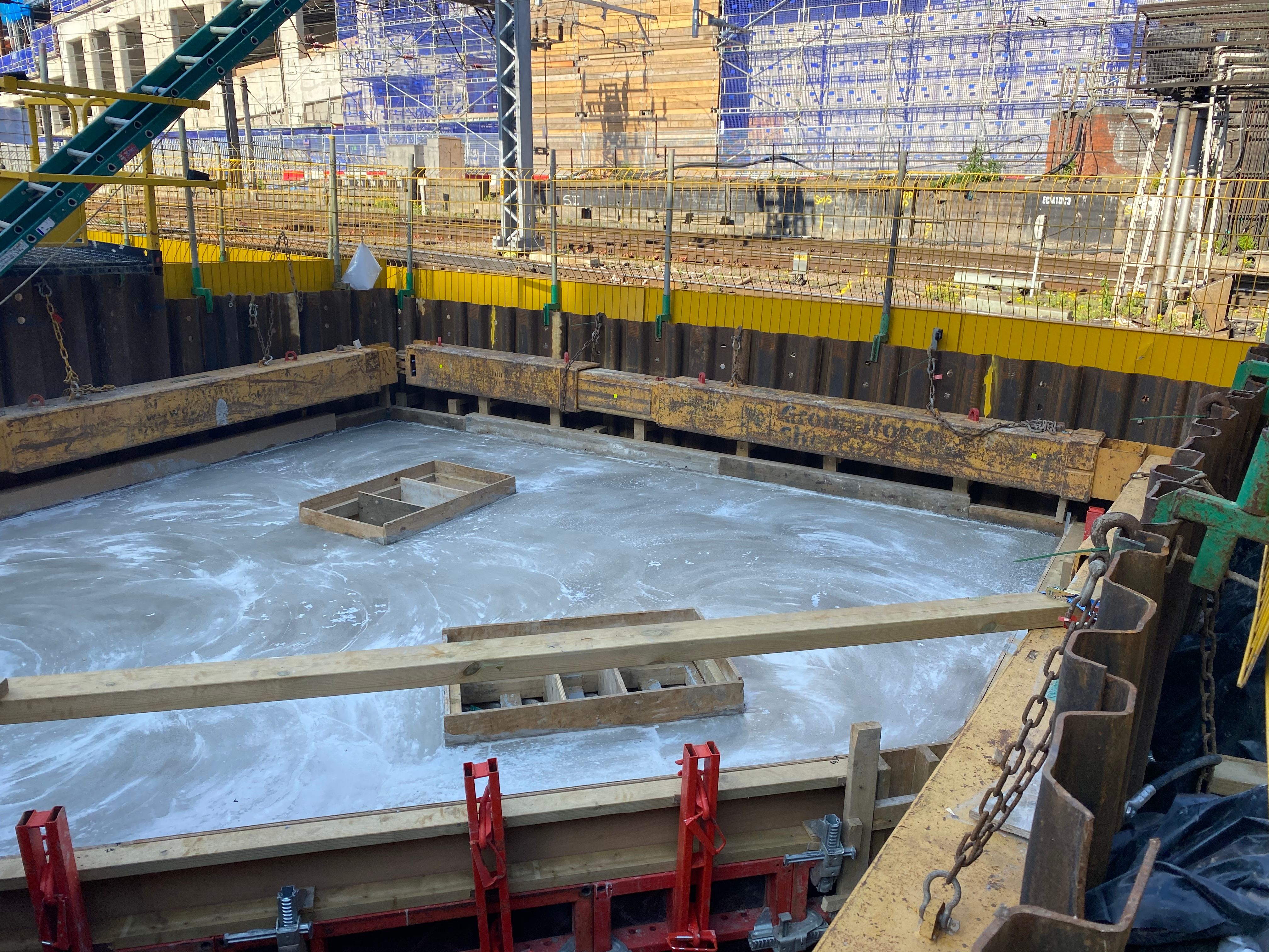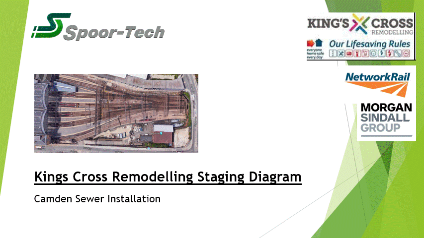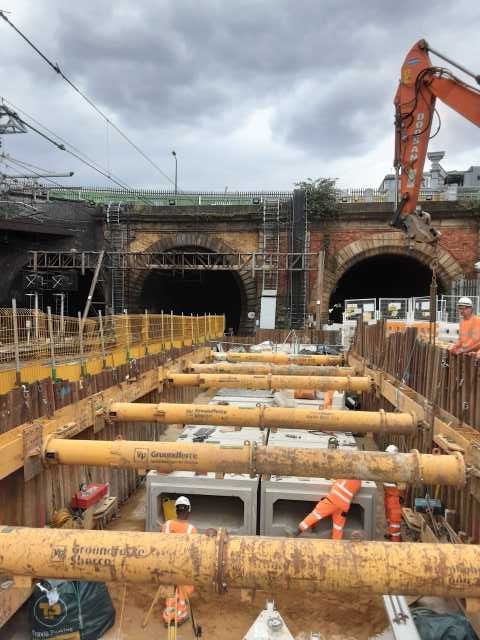 In order to facilitate the lowering of the existing track level on the Kings Cross Remodelling Project would require the complete replacement and decomissioning of a brick sewer directly beneath the existing track. The majority of the works could be undertaken off-line but the section below the tracks would be undertaken during a full closure over Christmas 2020.