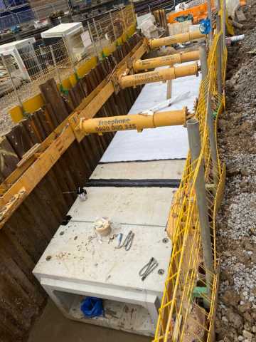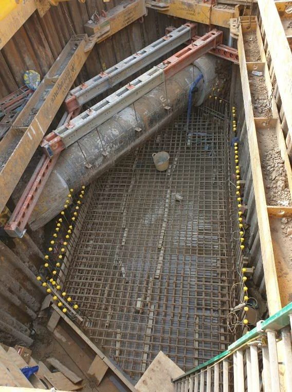 In all, four chambers, 22m of double bore culvert, 50m of single bore culvert adjacent to track and 25m of double bore culvert directly under the track was required for this scheme.