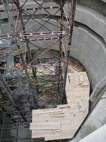 Dismantling the jetty required a complicated choreography of cutting burning and dissassembly, as all members had been welded in-situ as the shaft sinking progressed.
