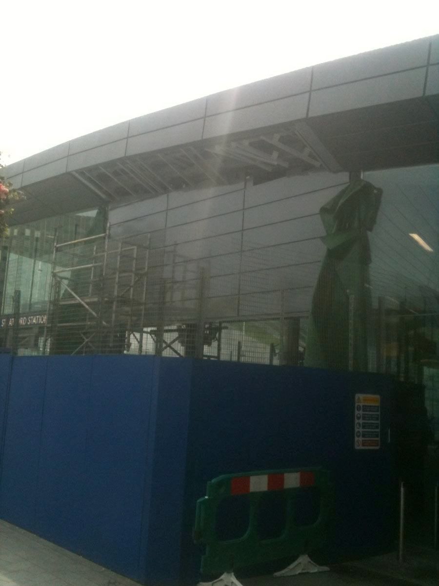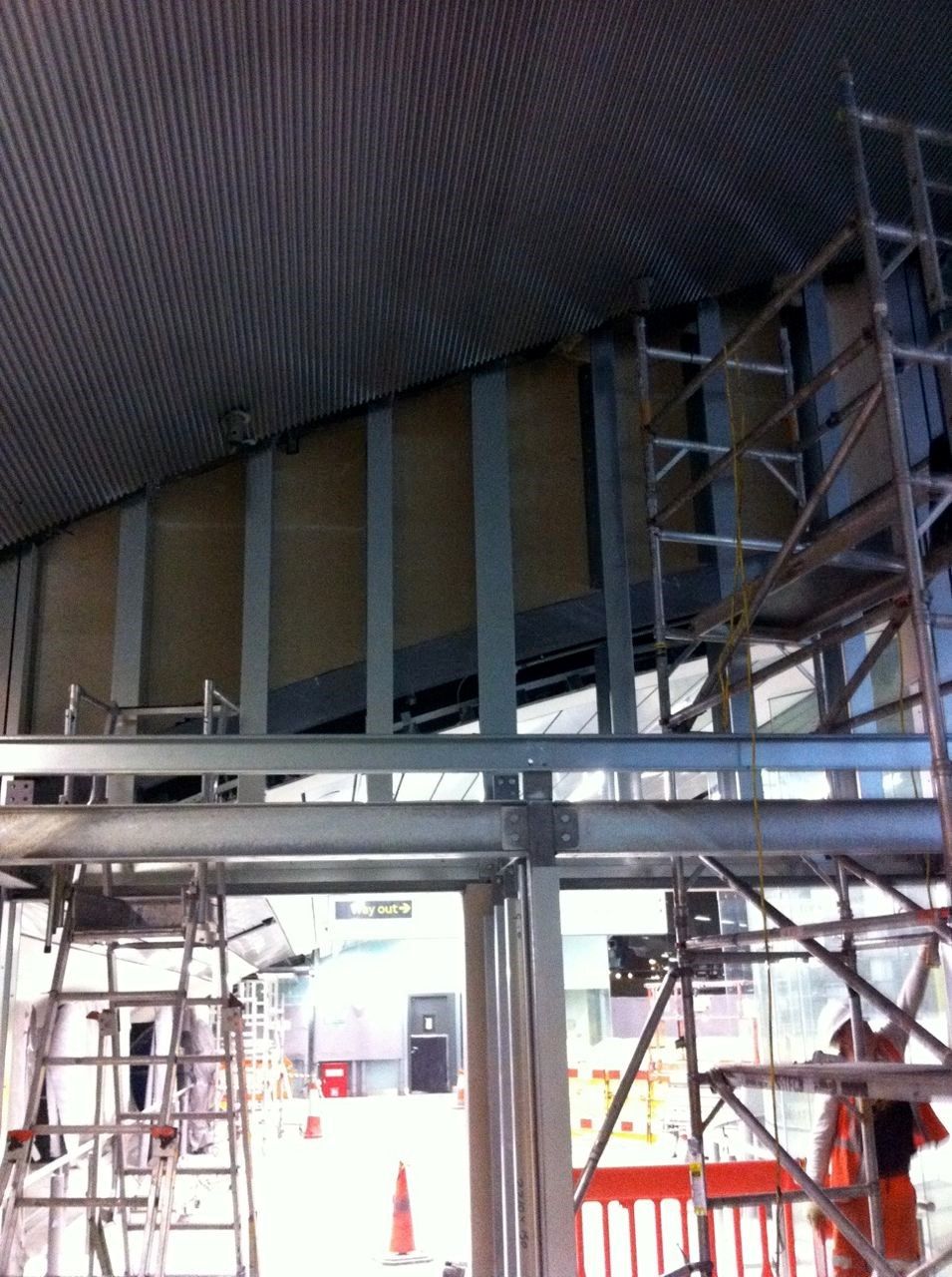 Gridline 17a – A new mezzanine entrance was constructed as part of the station upgrade but an area between the old station and the new extension had left a 3m area that was not within the scope of works of either of the main contractors. Spoor-tech where engaged to install piled foundations and ground beams to the basement area to support structural steelwork and a 40m2 structural slab infill between these areas. Station level works included a rainscreen cladding portal entrance and automatic fire doors. VALUE - £300k