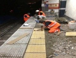At Wembley Park The removal of a 50m section of raised platform required that the entire surface be broken down 300mm in the structural slab, new sections of fast set concrete installed and a cold-lay temporary surface applied to leave the platform safe between shifts. This process was repeated nightly until the entire 300mm RVAR hump was removed and new copers and tactiles installed to the correct line and level. During a weekend closure, the temporary surface was removed and a new 3mm asphalt surface laid to bring the platform back into use at the correct height for new ‘S’ stock trains. Hounslow East involved the Removal and replacement of Platform copers along entire platform to include structural concrete as required and stainless steel undersail plates to support the copers in areas where the overhang was greater than the allowable dimension.